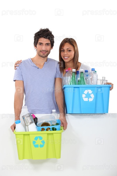 Пара собирает пластмассу для переработки