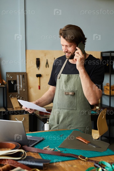 Улыбающийся ремесленник, управляющий малым бизнесом