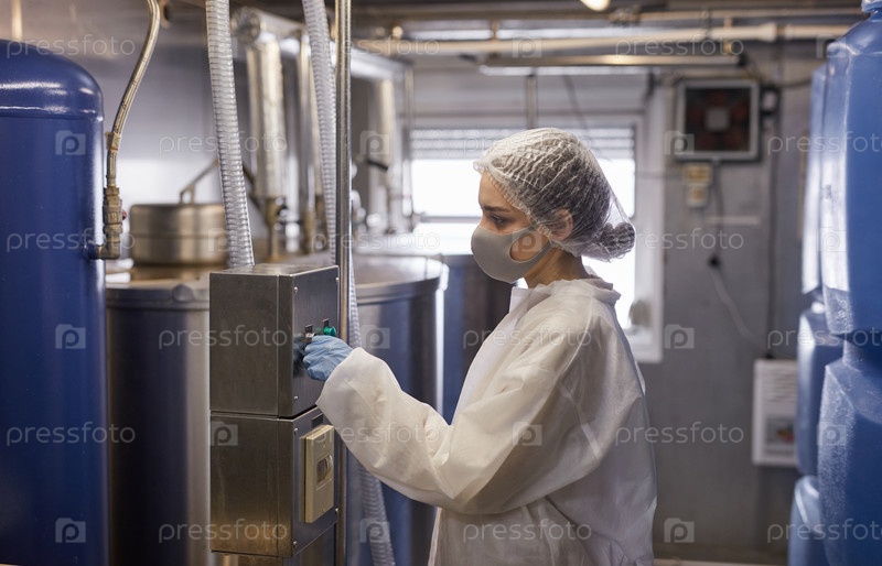 Работница фабрики-женщина, работающая с машиной