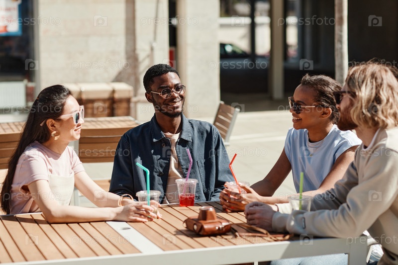 Друзья в открытом кафе