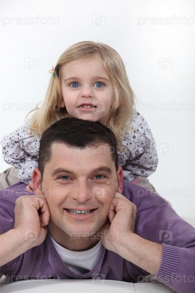 Отец и дочь, лежащие на кровати
