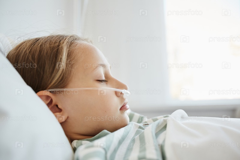 Девушка в больничной постели Side View