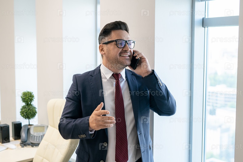 Работница белого воротничка в формальной одежде, разговаривающая по мобильному телефону