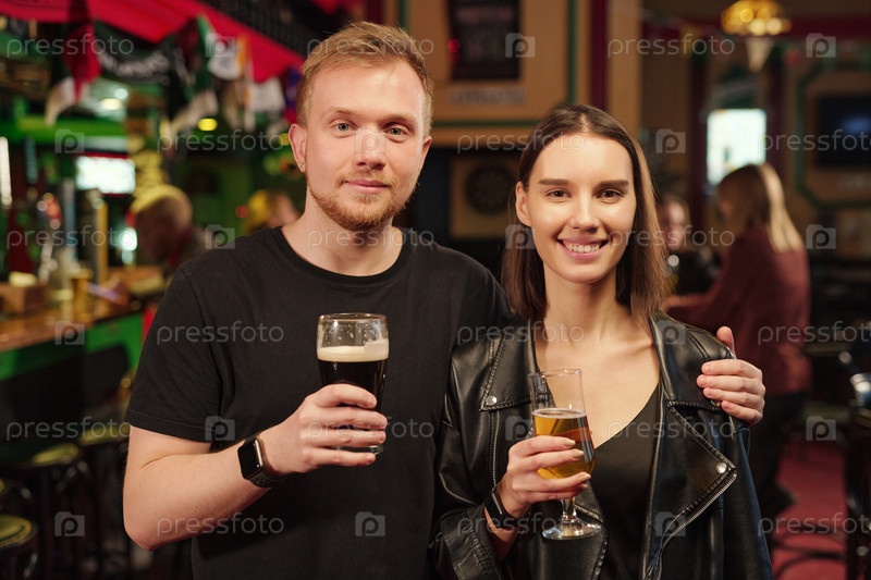 Молодая пара пьет пиво