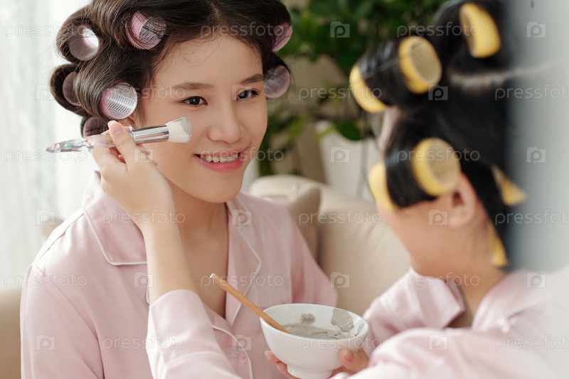 Женщина, наносящая маску из глины для очистки пор