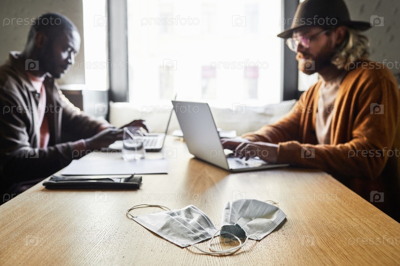 Мужчины, встречающиеся в кафе Столовой пост Covid