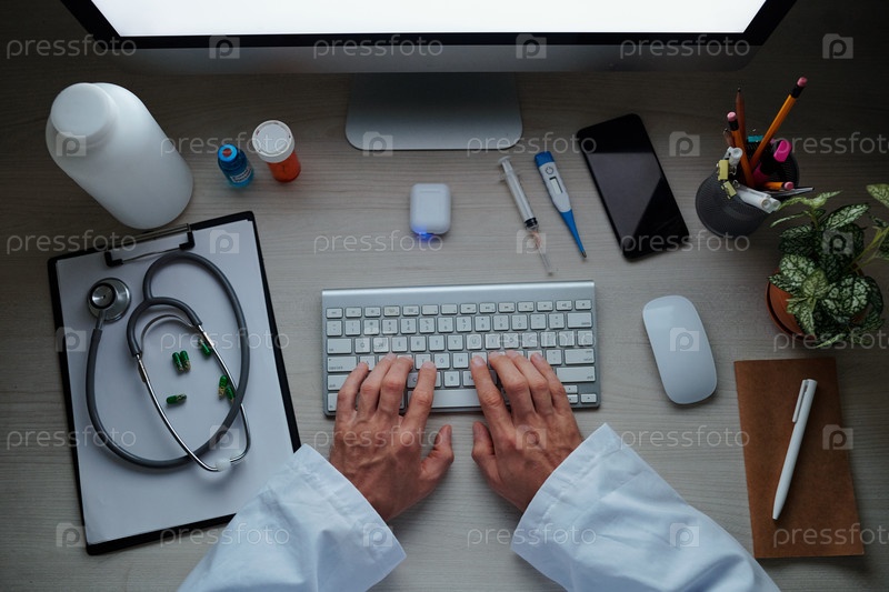 Врач заполняет документы онлайн
