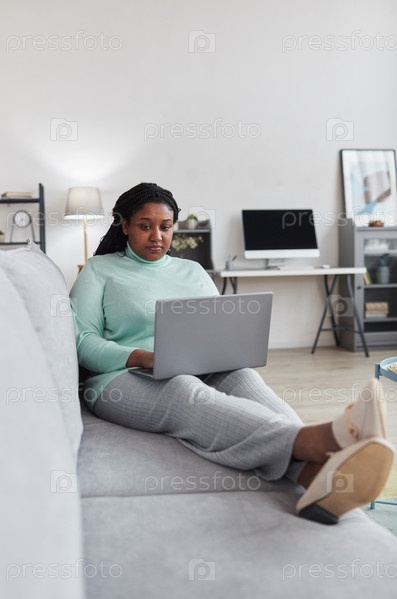 Афроамериканская женщина с избыточным весом отдыхает на диване