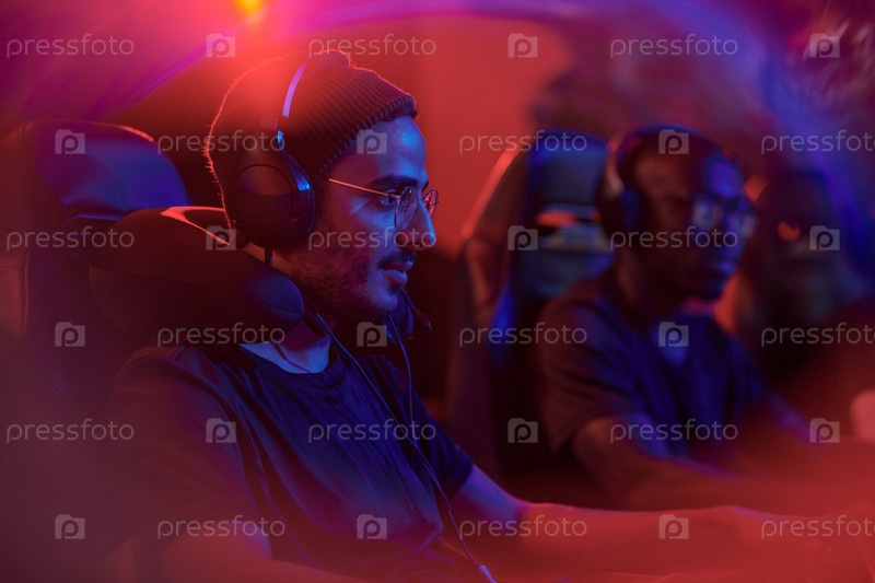 Молодой геймер в гарнитуре играет в игру