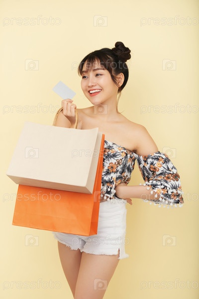 Позитивная женщина, держащая сумки