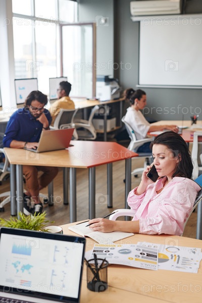 Аналитик разговаривает с клиентом по телефону
