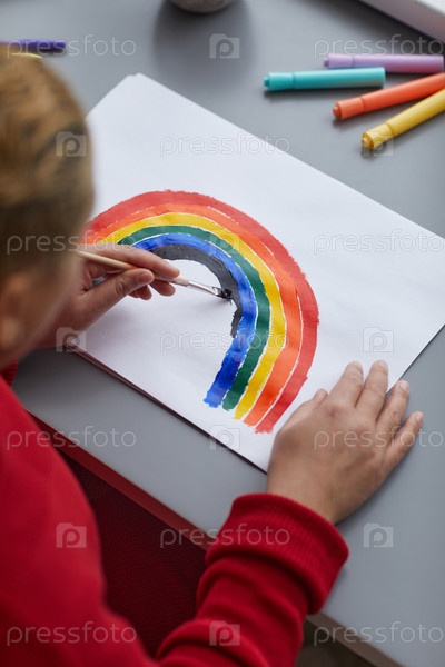 Смешанная раса Женщина, рисующая радугу Close Up