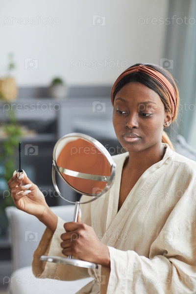 Молодая афроамериканка делает макияж дома