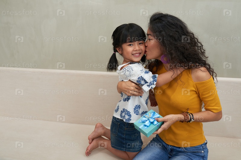 Любящая мать целует дочь дома