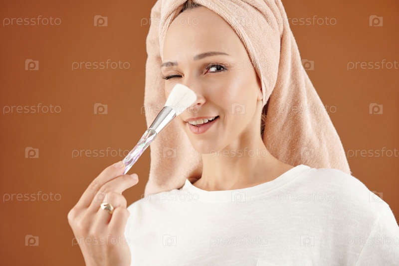 Женщина раздает лицевой порошок