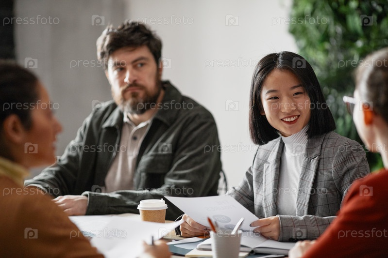 Успешная азиатская бизнесвумен с командой