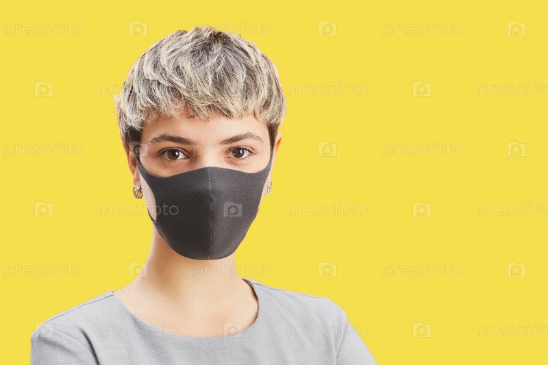 Молодая женщина, носящая маску на желтом