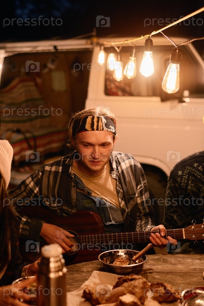 Человек, играющий на гитаре на пикнике