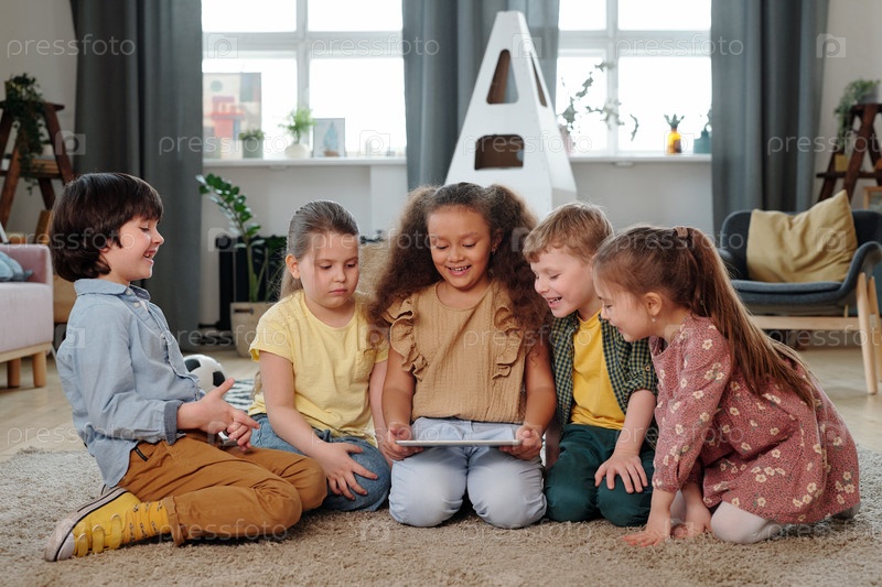Группа маленьких детей, смотрящих мультфильмы онлайн