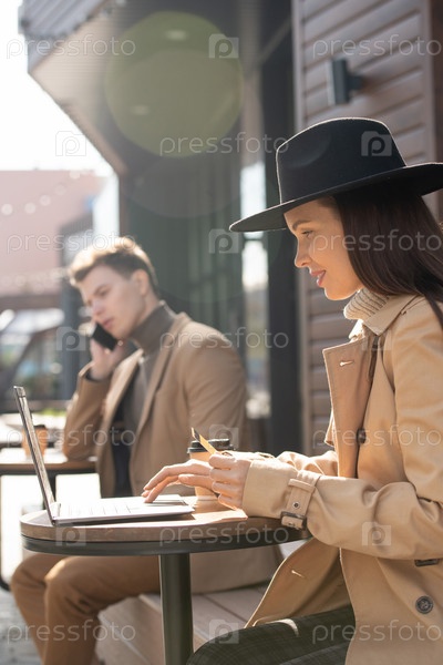 Современная молодая элегантная женщина, держащая кредитную карту во время покупок в Интернете
