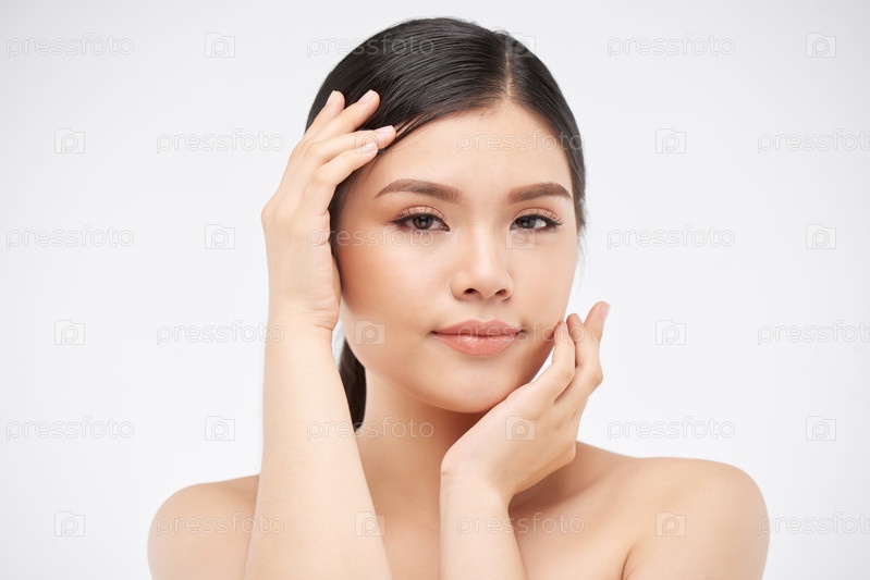 Молодая женщина касается ее лица
