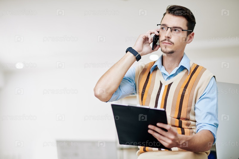Уверенный бизнесмен, разговаривающий по телефону