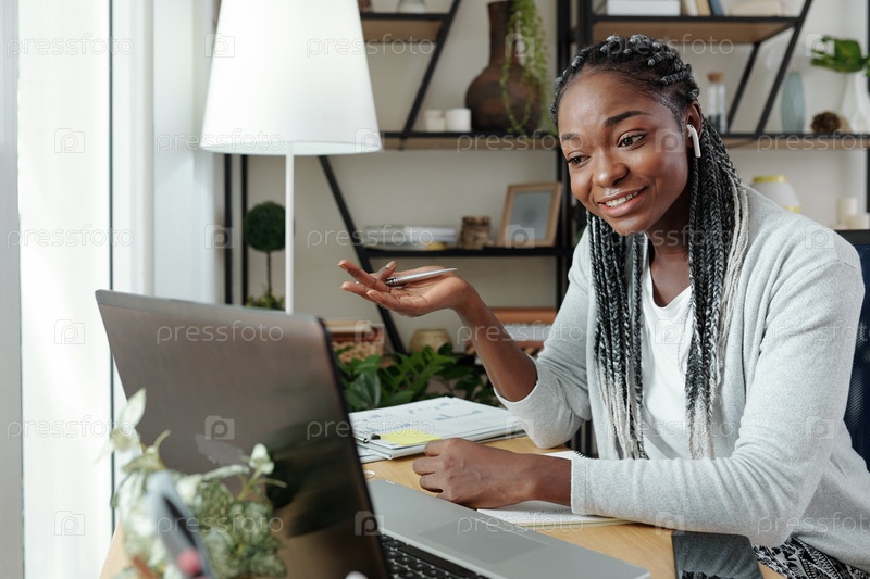 Деловая женщина видеозвонит коллеге по работе