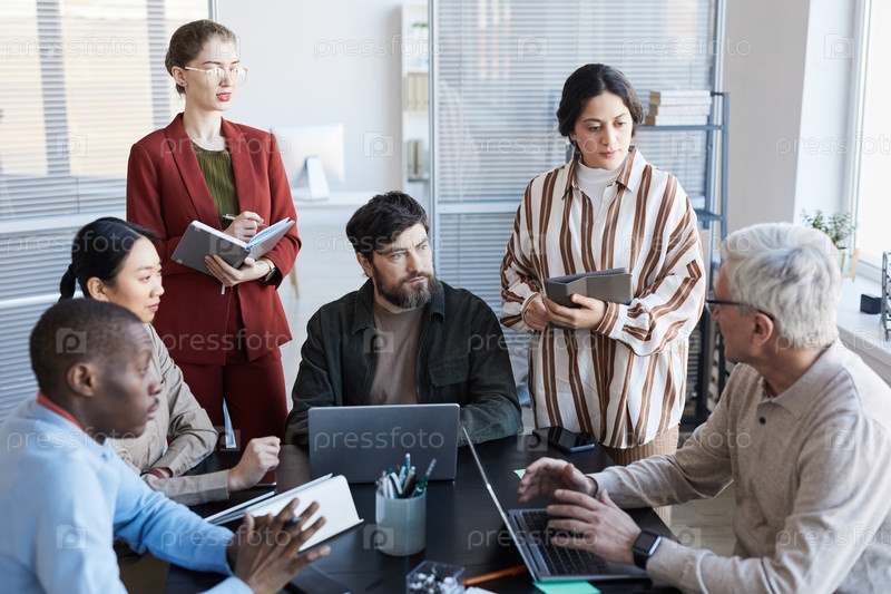Мультиэтническая команда сотрудничает на деловой встрече