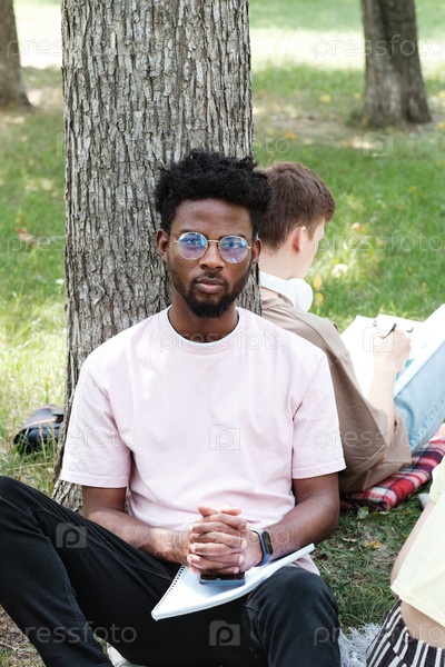 Африканский студент, сидящий в парке