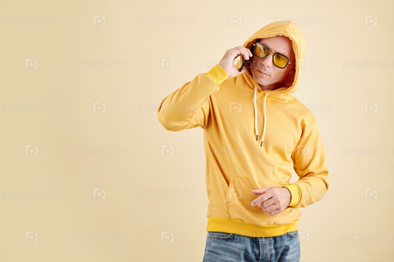 Человек в капюшоне разговаривает по телефону