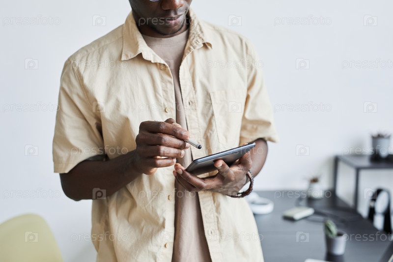 Мужчина, работающий на планшетном компьютере в офисе