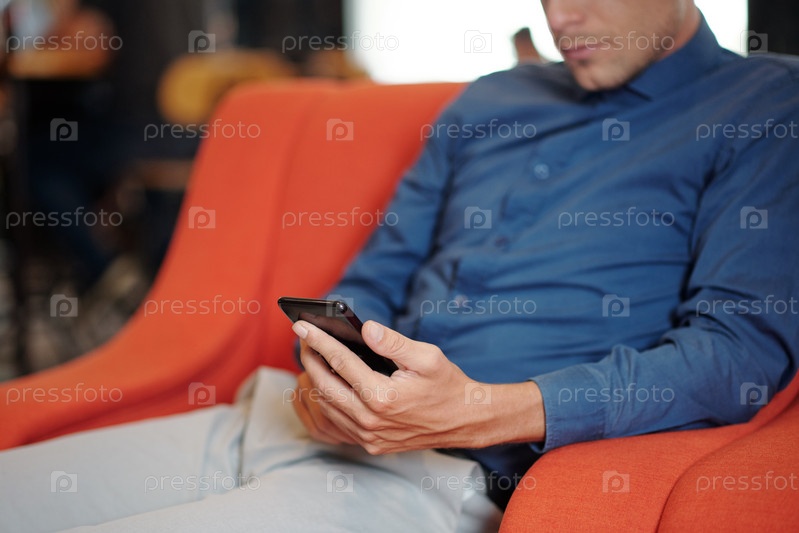 Человек читает текстовые сообщения