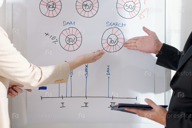 Бизнесмены обсуждают диаграммы