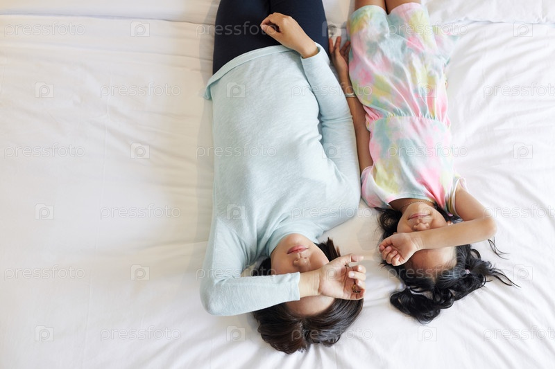 Мать и дочь отдыхают на кровати