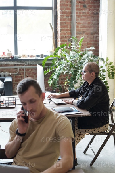 Серьезная женщина-дизайнер, сидящая перед компьютерным монитором