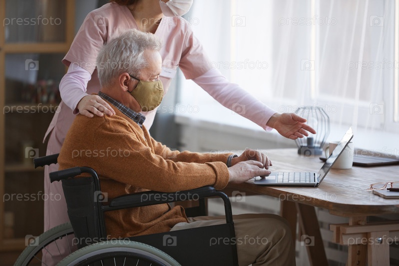 Пожилой мужчина-инвалид, использующий лаптоп для бокового просмотра