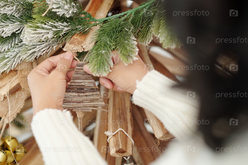 Женщина с висящей игрушкой на рождественской елке