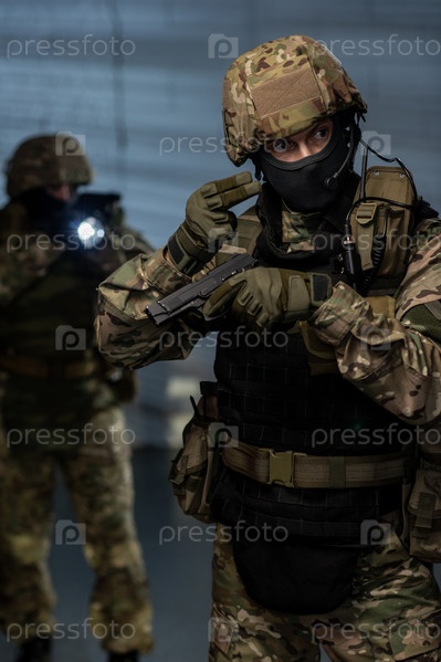 Мужчины в военном костюме собираются захватить террористов