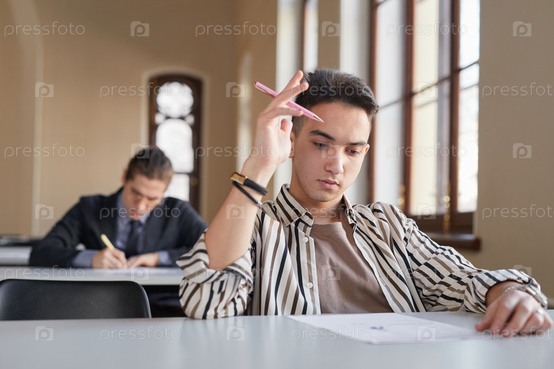 Мальчик-подросток сдает экзамен в школе