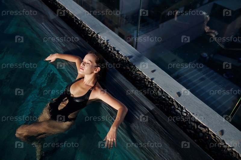 Спокойная женщина отдыхает в бассейне
