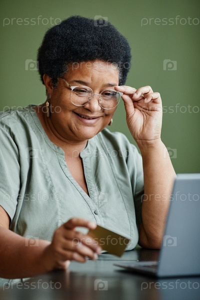 Улыбающаяся чернокожая женщина покупает онлайн