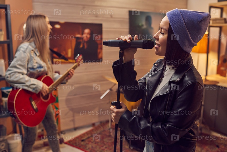 Женщина поет со своей группой