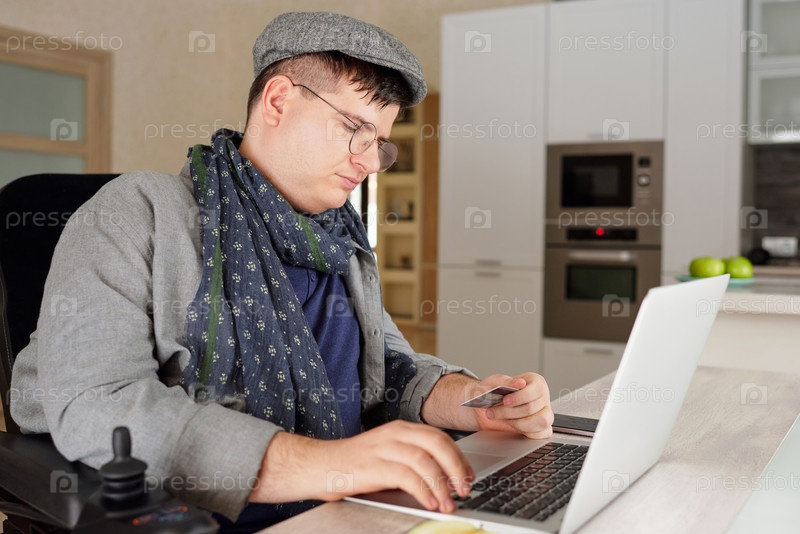 Современный молодой человек с инвалидностью делает заказ в интернет-магазине