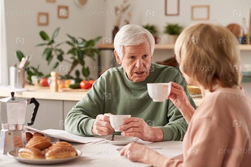Старшая пара завтракает дома