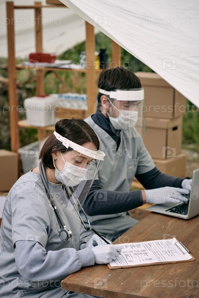 Два молодых современных клинициста, выполняющих свою работу