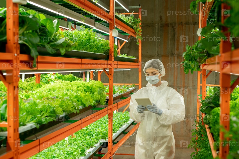 Агроном, использующий планшет при анализе роста растений