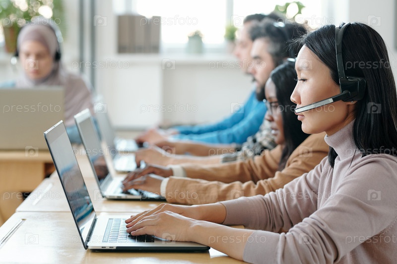 Ряд молодых представителей межкультурной службы поддержки клиентов