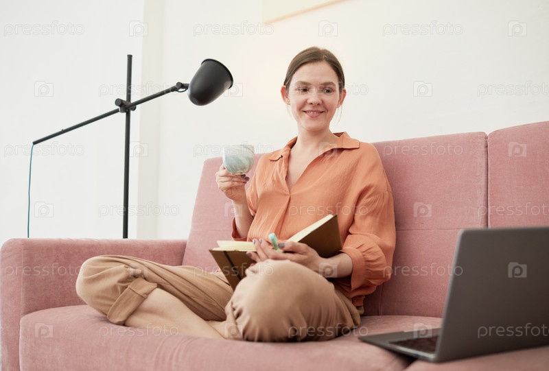 Женщина учится с ноутбуком дома