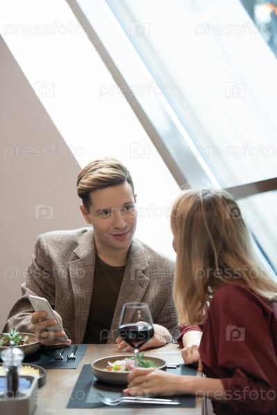 Молодой человек смотрит на свою девушку, обсуждая с ней любопытное видео