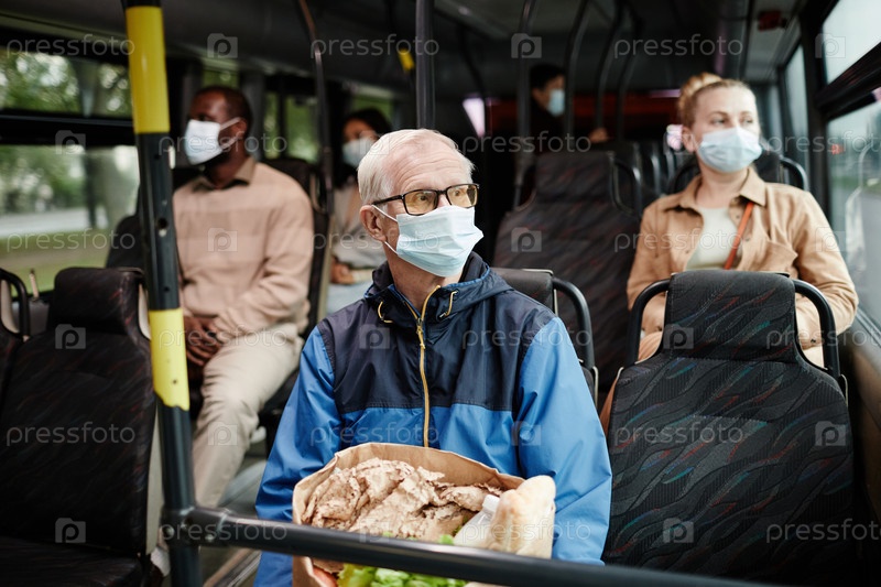 Мужчина-старший, носящий маску в автобусе